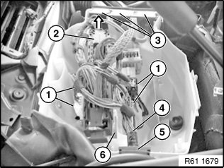 Pull wiring harness grommet (3) out of electronics box and remove wiring harness with equipment carrier (6).