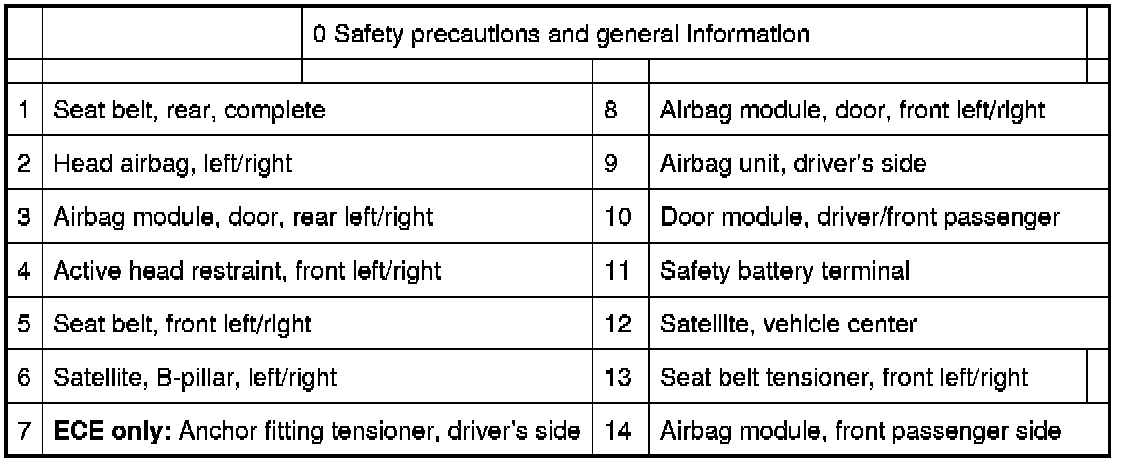 72 12 ... - Overview of airbag modules, seat belts and airbag control units