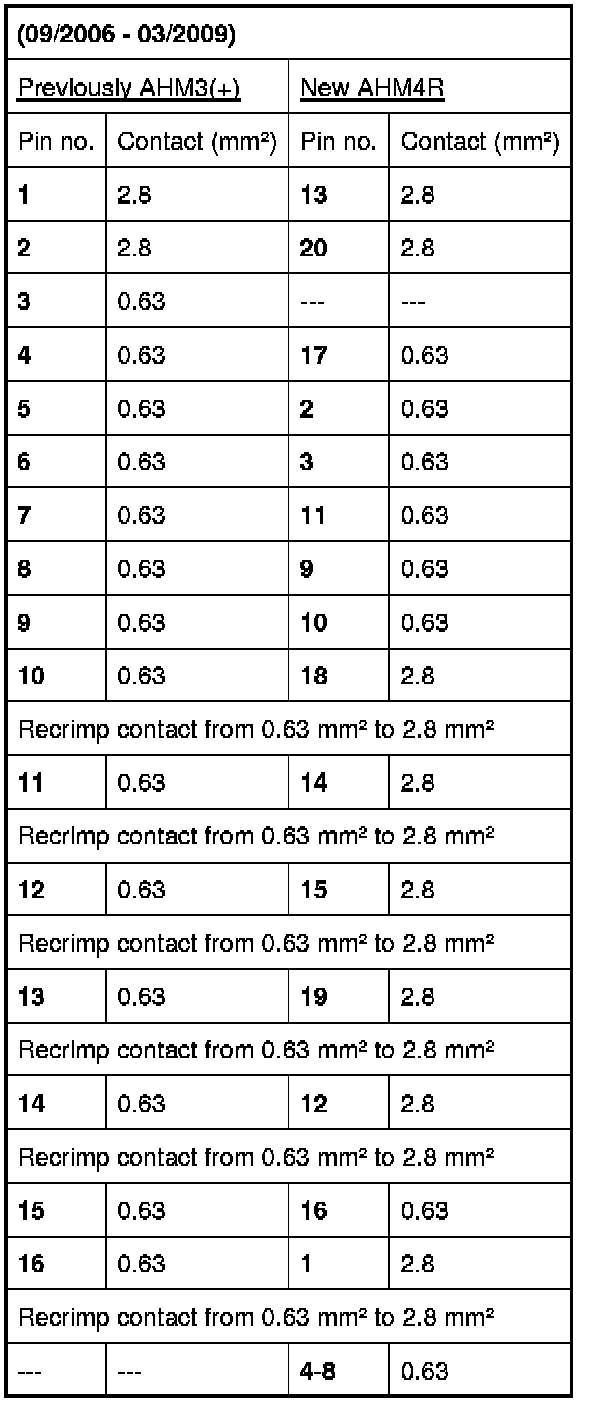 Plug connectors and associated pin assignments must be adapted if the old plug connector AHM3(+) is fitted.