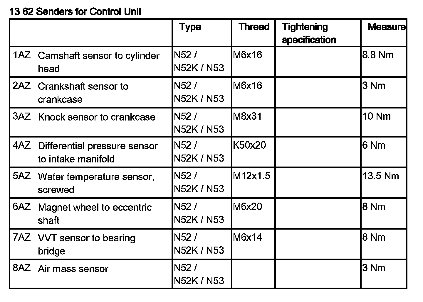 Tightening torque 13 62 6AZ.