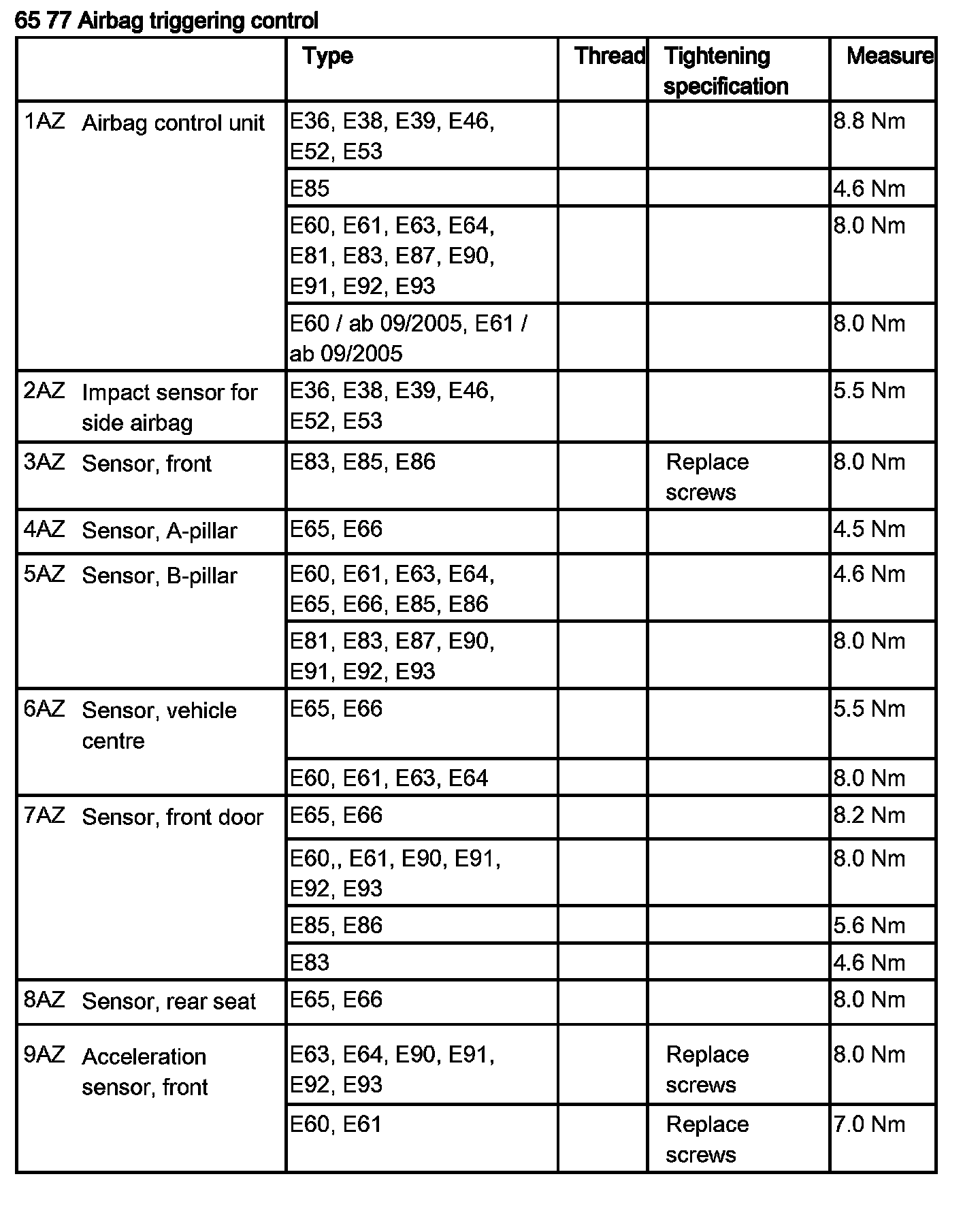 Tightening torque 65 77 1AZ.