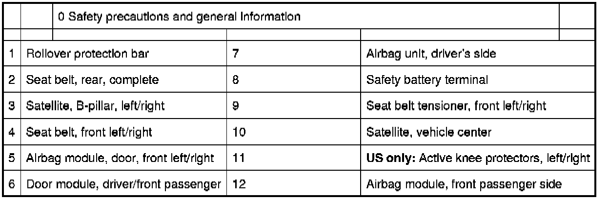 72 12 ... - Overview of airbag modules, seat belts, airbag control units and rollover protection bars