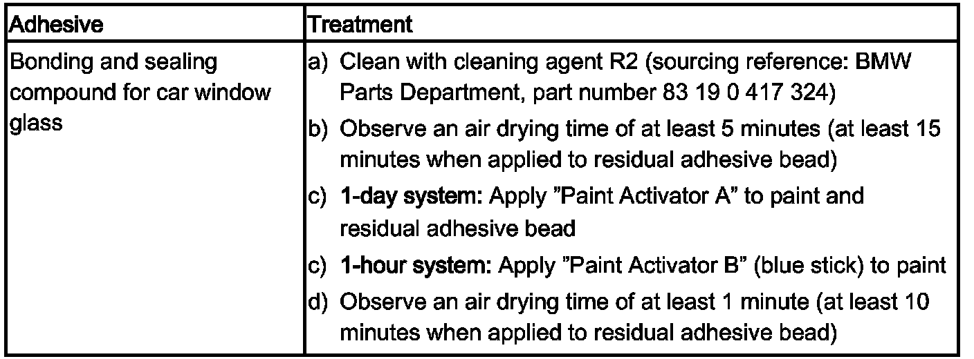 The BMW-approved bonding agents must be used to treat adhesive areas: