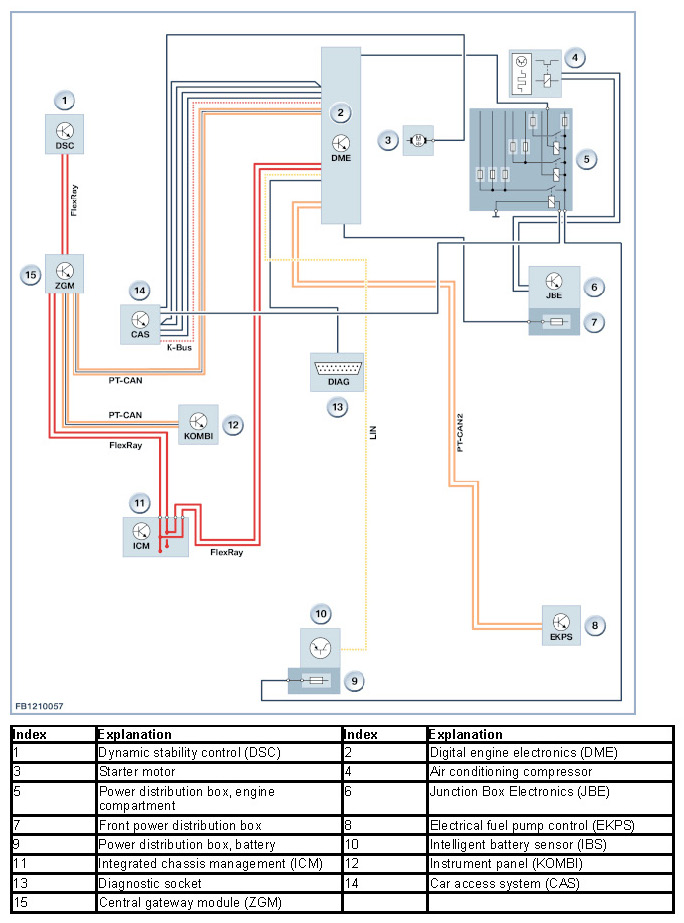 - Main bus systems: FlexRay, K-CAN, K-CAN2, MOST, PT-CAN and PT-CAN2