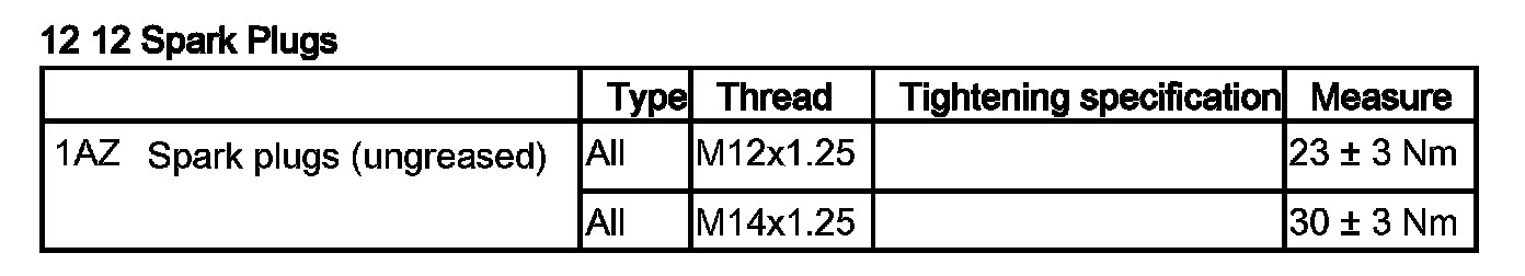 Tightening torque 12 12 2AZ.