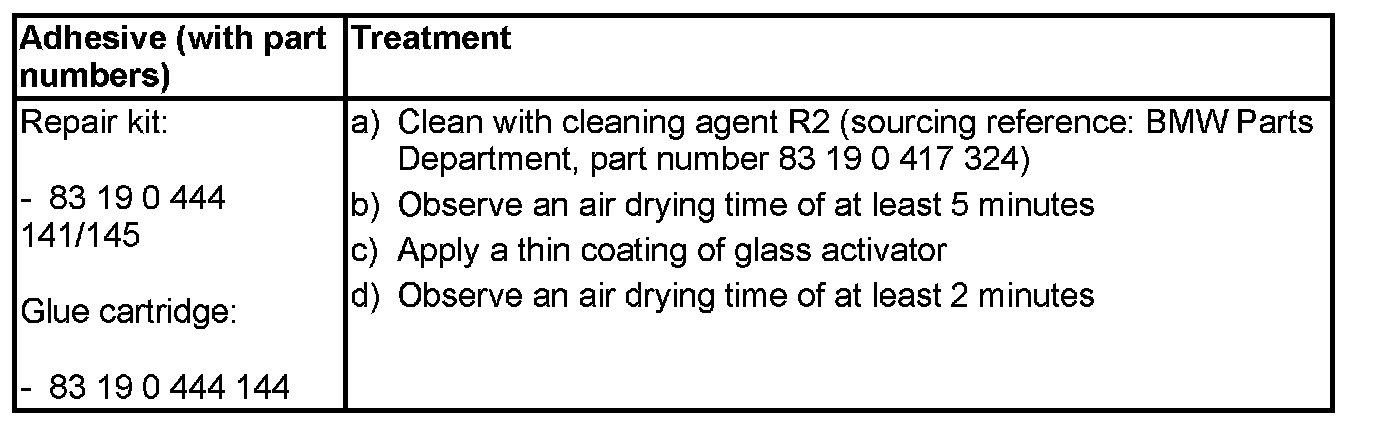 - Window glass adhesive (Part number 83 19 0 444 144*)