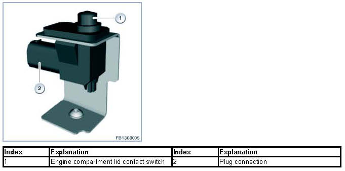 The engine compartment lid contact switch is included in the calculations of the automatic engine start-stop as an input signal. If the engine compartment lid is open, the engine is not started or stopped by the automatic engine start-stop.