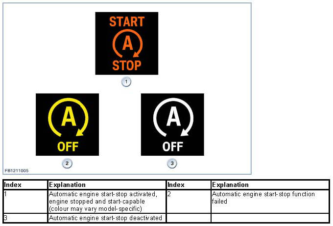Different designations are used for the automatic engine start-stop. The system is described as the Auto Start Stop Function in the on-board literature.