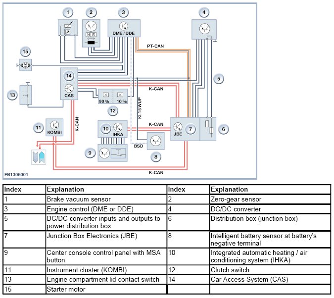 The MSA function is located in the engine electronics (DME or DDE). Various information from the bus systems is used for the MSA. The following components are also required. The following components for the MSA are described: