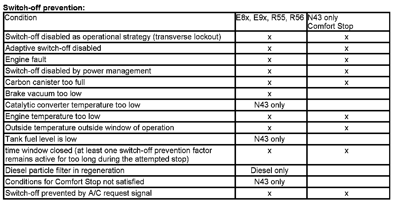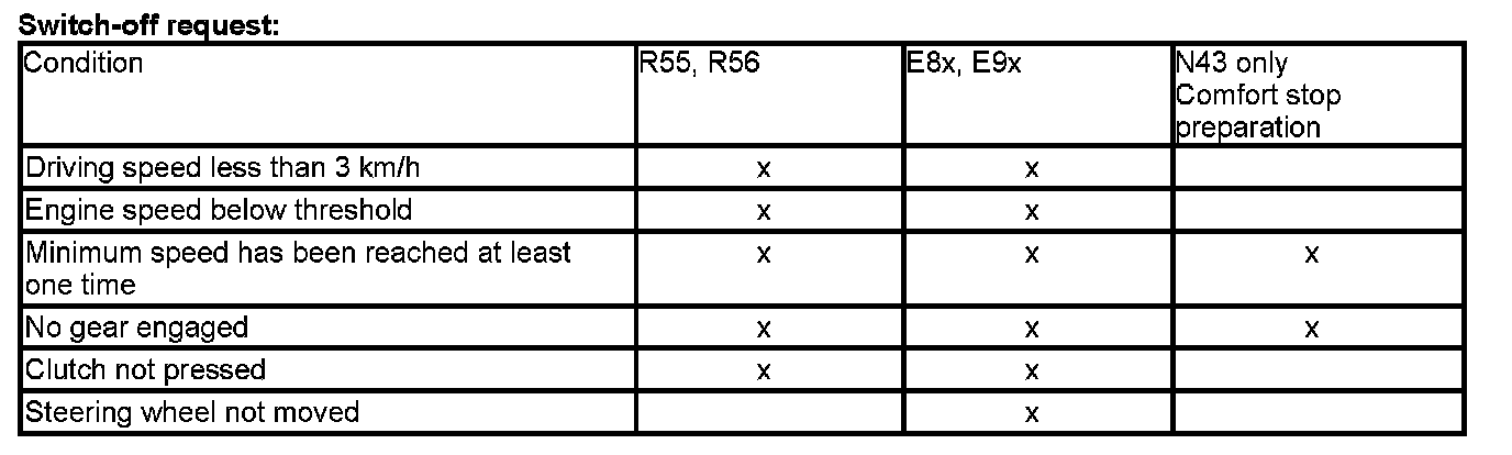 Comfort Stop relies on reduced charge density to prevent the engine from shaking. The Comfort Stop function discharges the air from the intake manifold/plenum chamber (engine continues running for 1 second).
