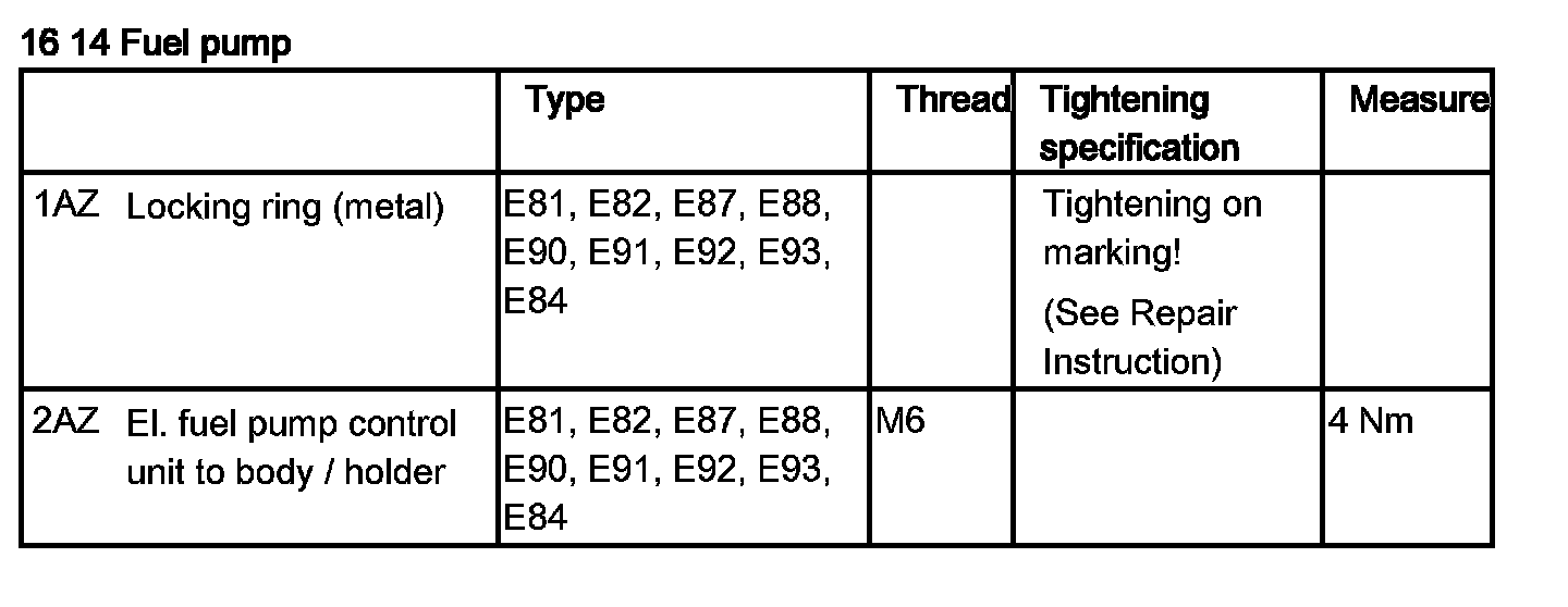 Tightening torque 16 14 1AZ.