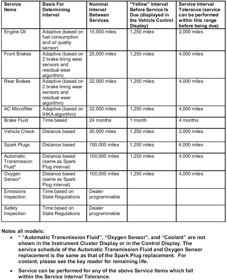CBS measures, monitors and determines the required maintenance of several service items independently of each other. This technology prompts the customer to bring the vehicle in for service whenever one of the CBS items requires maintenance or replacement. CBS strikes a compromise between too frequent maintenance intervals and too rigid service intervals that call for the replacement of service items that may still have substantial remaining useful life. CBS also details the recommended, due, and overdue required maintenance during and after the BMW Vehicle Maintenance Program Agreement.