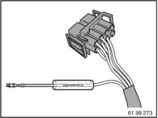 5. Make sure that no safety-related system according to circuit diagram (e.g. antilock braking system, active rear-axle kinematics, airbags, etc.) are influenced. Otherwise replace faulty wiring harness or use repair cable (sourcing reference: BMW Parts Service)