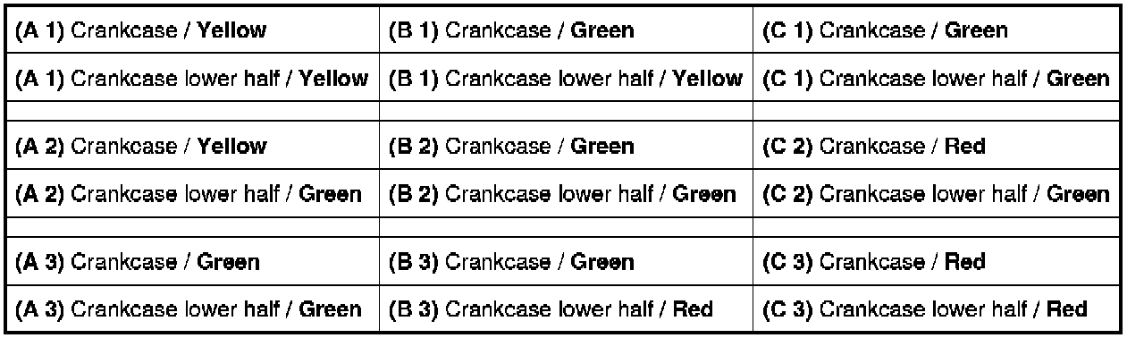 Possible color combinations for mounting the crankshaft in the crankcase.