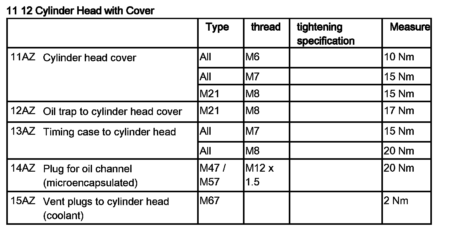 Tightening torque 11 12 7AZ.