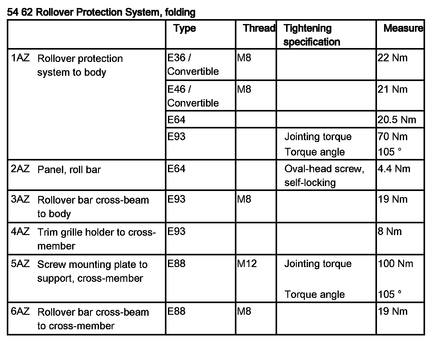 Roll Bar: Specifications
