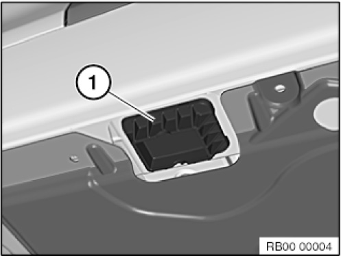 Align the rubber block (2) with the jacking points (1) in such a way that no adjoining components are touched and thereby damaged.