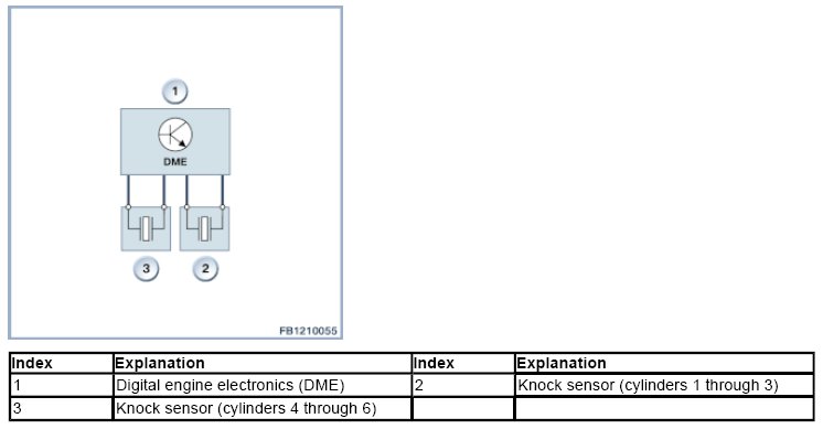 When knock persists over an extended period, the pressure waves from this violent combustion of the air-fuel mixture can cause mechanical and thermal damage to the head gasket, the pistons and the cylinder head itself. The knock sensors register the characteristic oscillations from combustion knock and convert them into electrical signals for transmission to the DME digital engine electronics system module. Within the DME module the signals are processed according to firing order to allow correlation with specific individual cylinders.