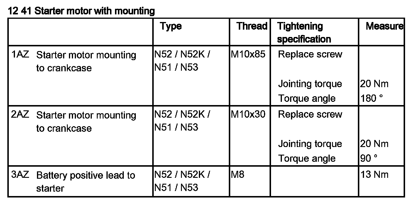 12 41 020 Removing And Installing/replacing Starter (N52, N52K, N51, N53, N54)