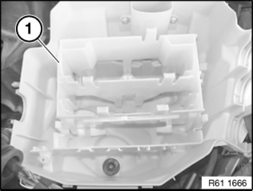 - Remove microfilter housing 64 31 092 Removing and Installing/Replacing Microfilter Housing (Lower Section)
