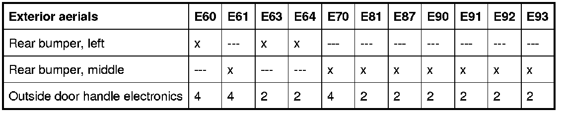 - The remote control (FBD) receiver is integrated into the aerial amplifier. (> E81, E87, E93: FBD receiver integrated in interior mirror)