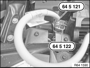 Fit and secure sealing adapter 64 5 123 to connection of low-pressure line.
