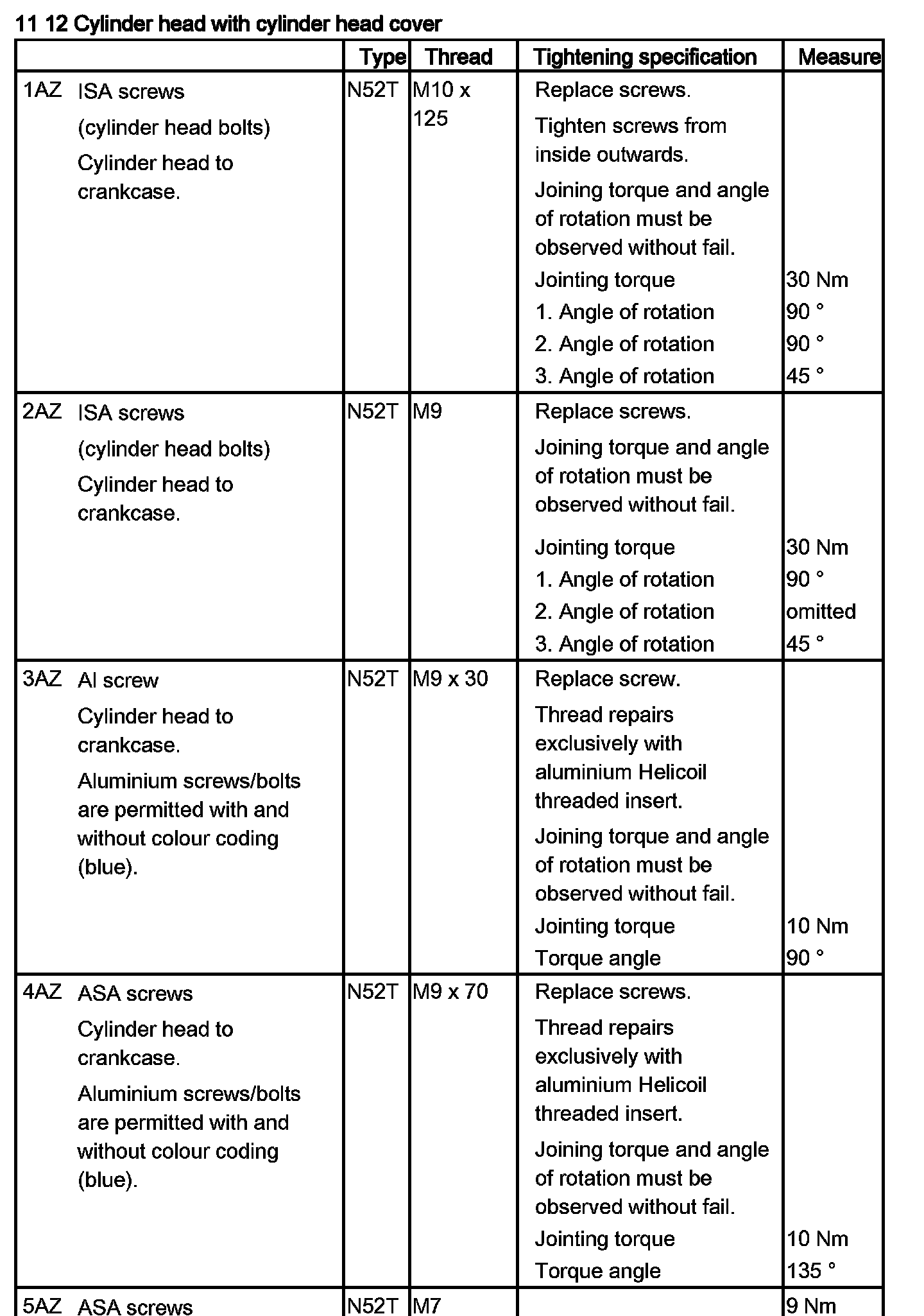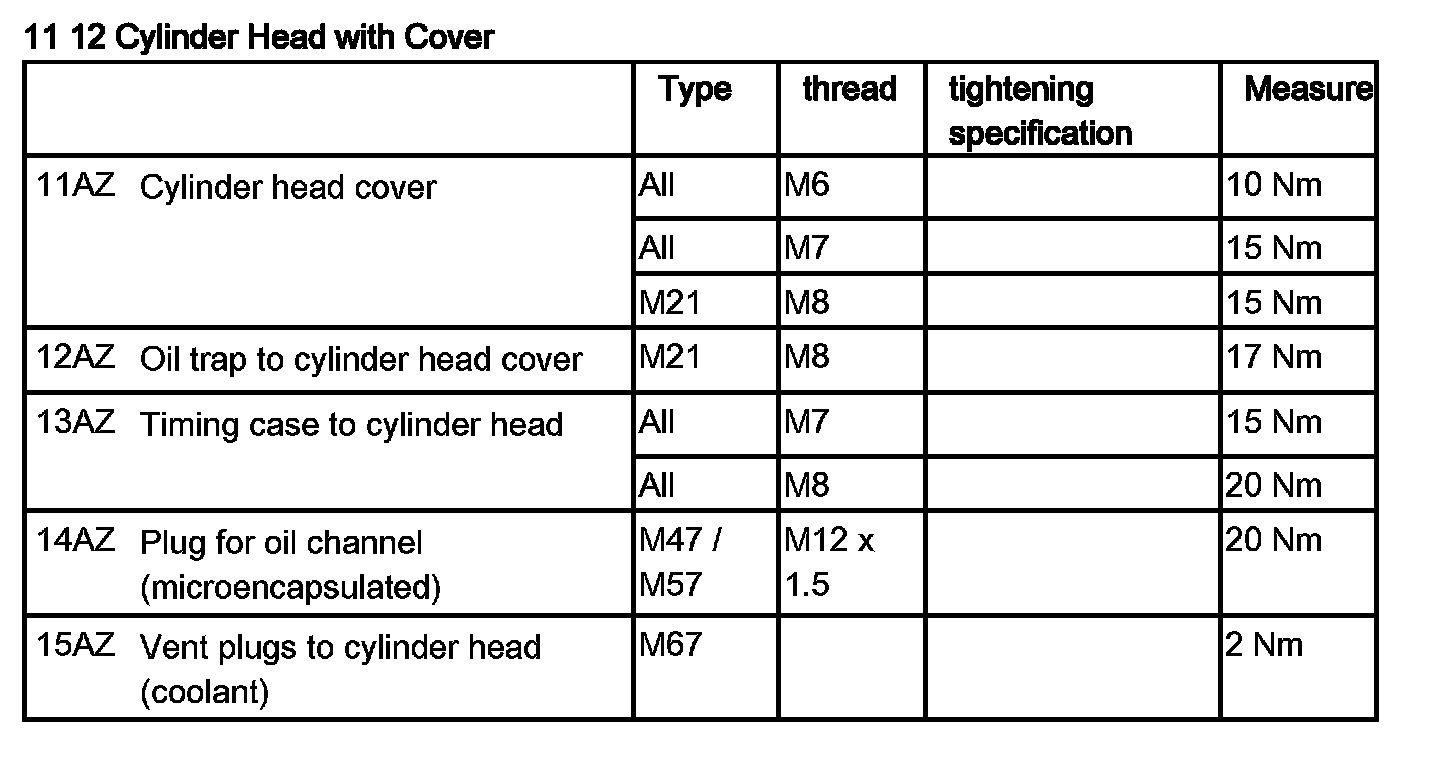 Tightening torque 11 12 6AZ.