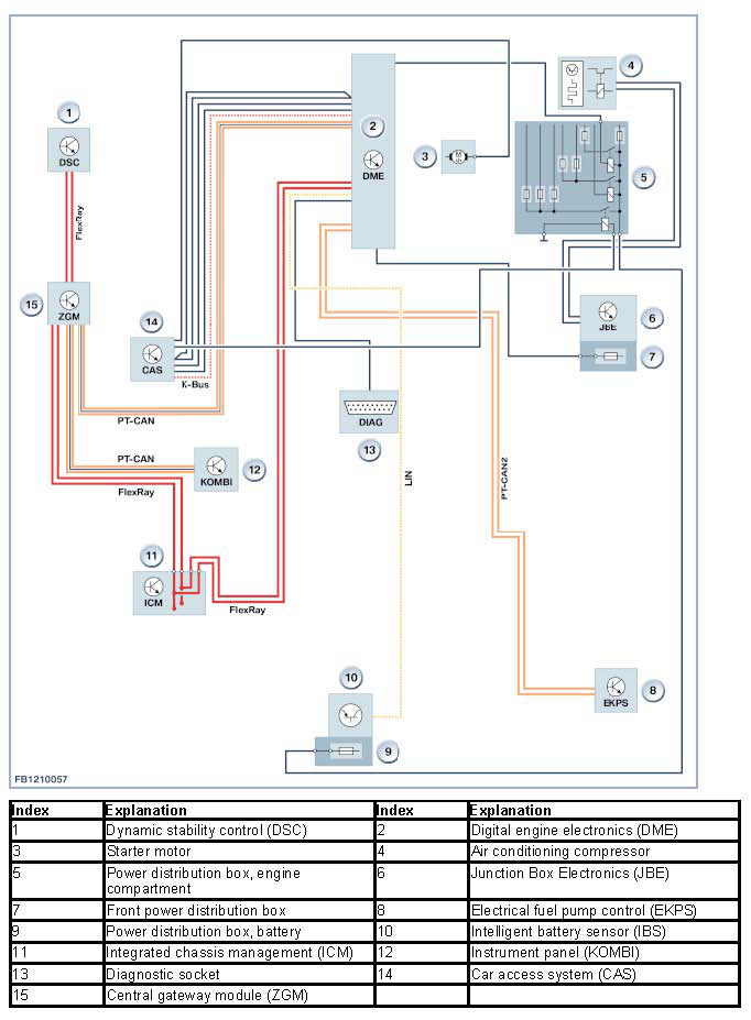 - Main bus systems: FlexRay, K-CAN, K-CAN2, MOST, PT-CAN and PT-CAN2