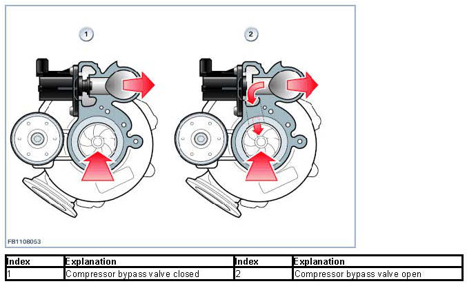 The following illustration shows how the compressor bypass valve operates.