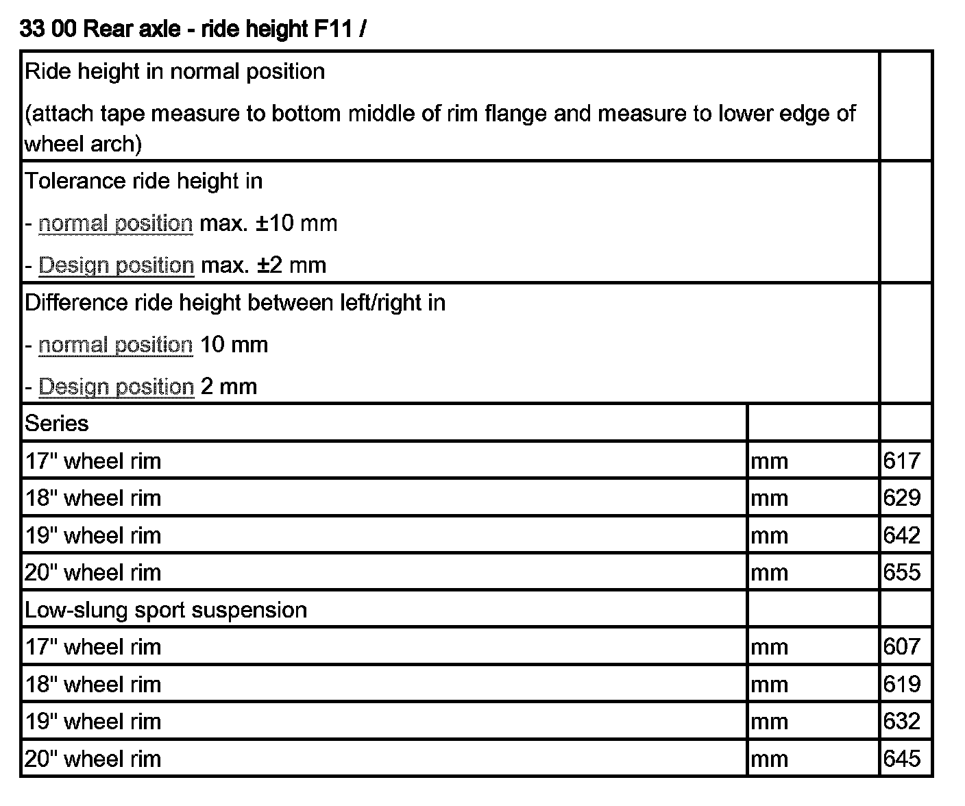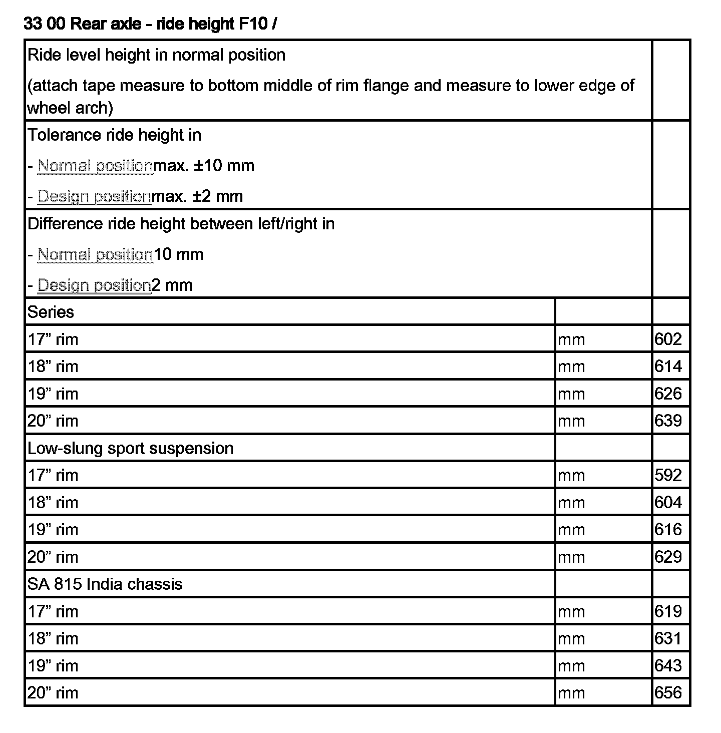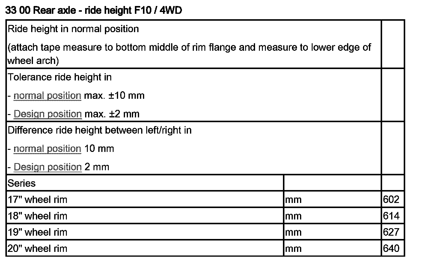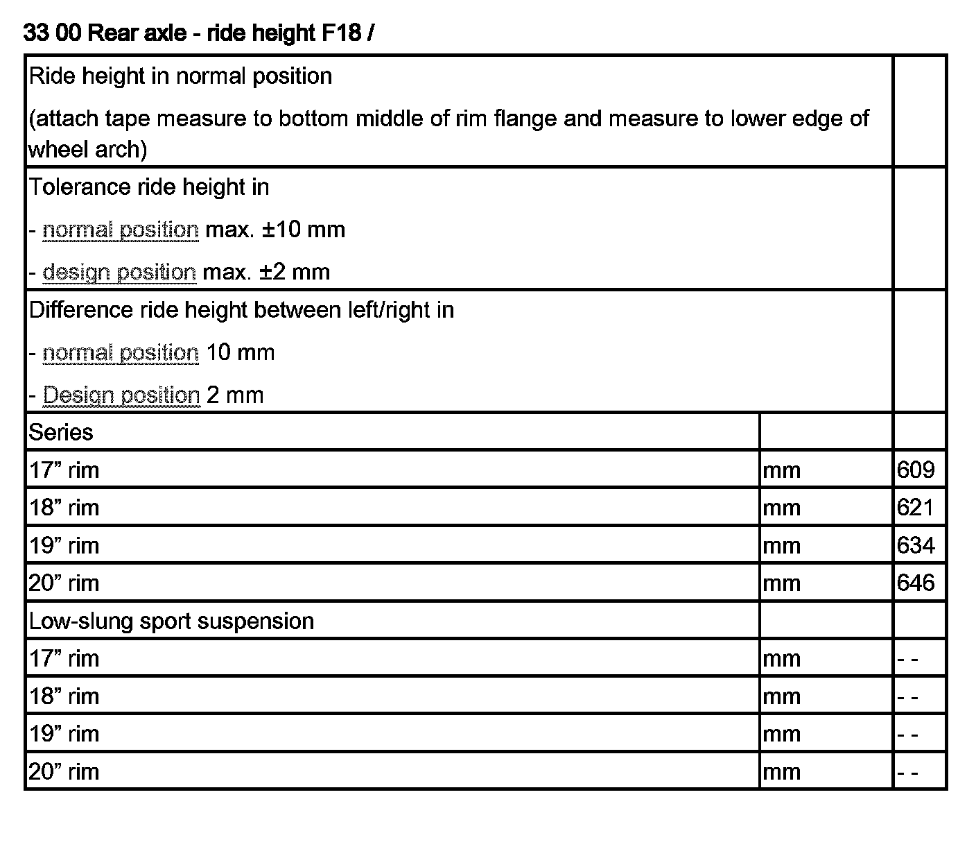 33 00 Rear Axle - Ride Height