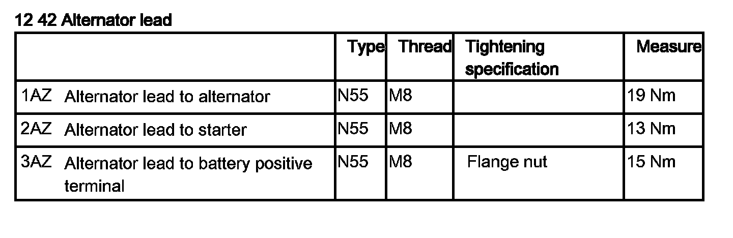 Tightening torque 12 42 1AZ.