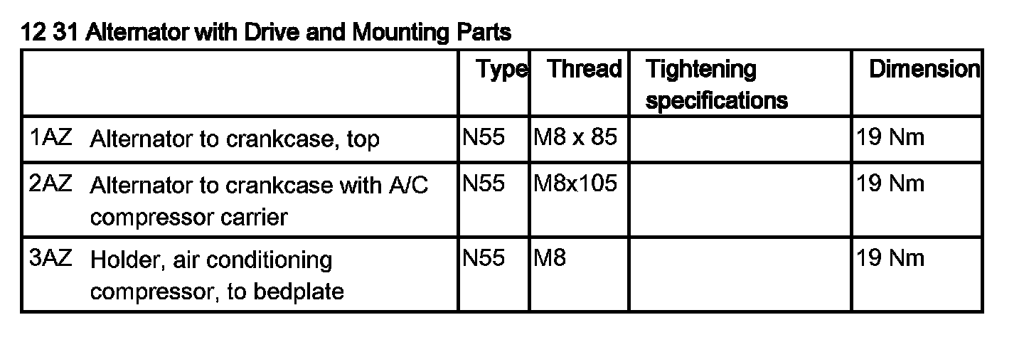 Tightening torque 12 31 3AZ.