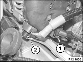 Unlock connector (1) and remove.