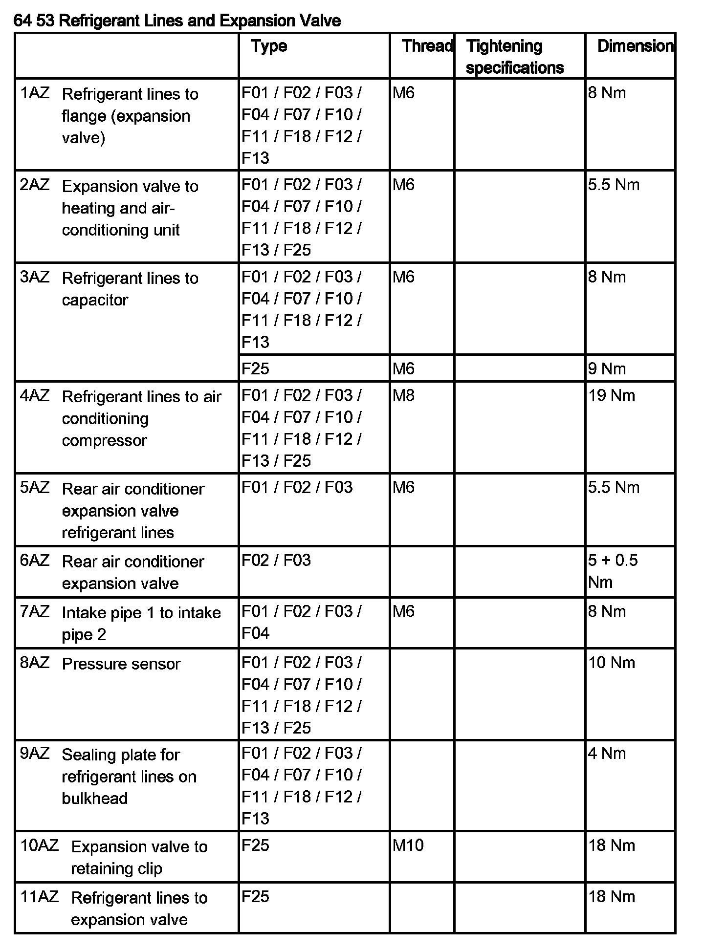 Tightening torque 64 53 3AZ.