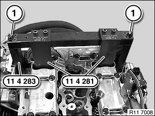To open central bolts, release at intake and exhaust adjusters with special tool 11 4 280 only.