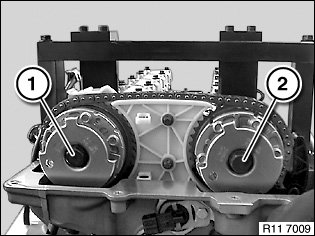 Detach intake camshaft adjuster (2) from intake camshaft.