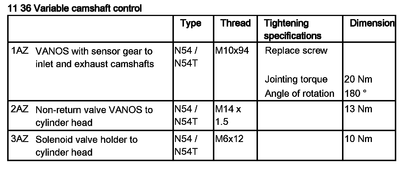 Tightening torque 11 36 1AZ.