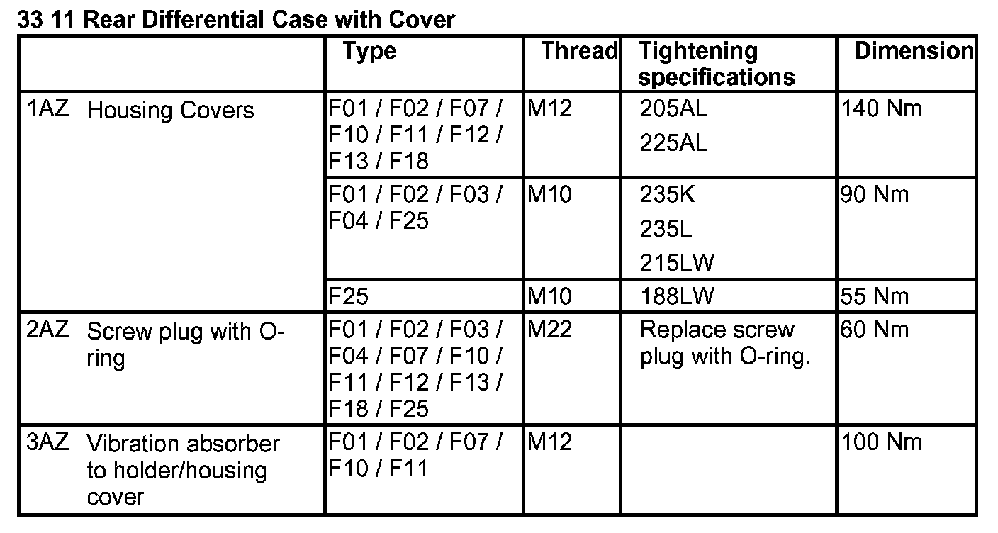 Tightening torque 33 11 2AZ.