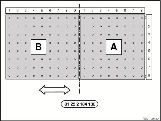 Working plate (A and B) is subdivided by a coordinate system and a possible installation position is recommended in the respective repair manual