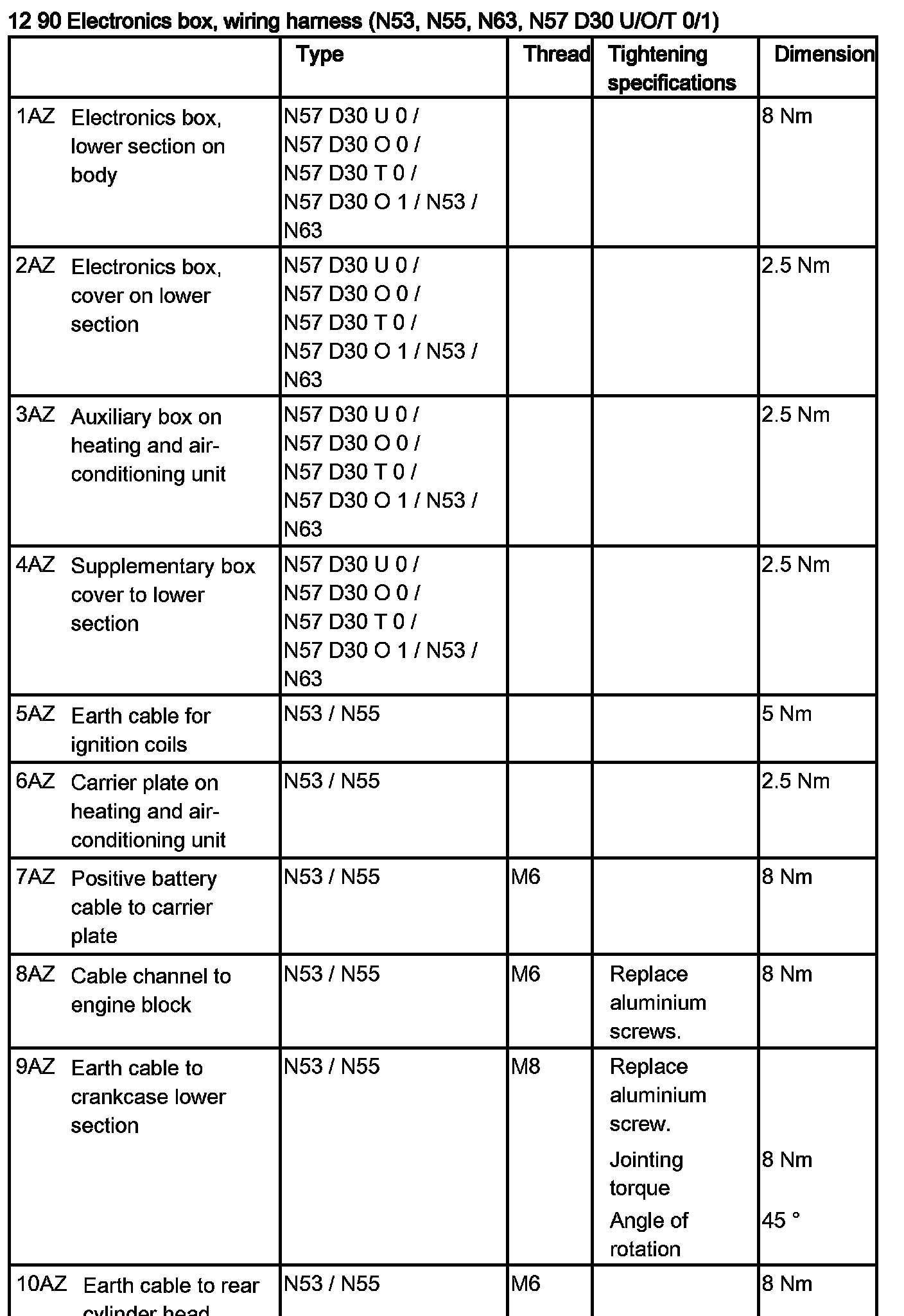 Tightening torque 12 90 2AZ.