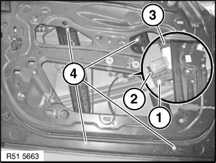 - Carry out work on the power window regulator only when the power window motor is de-energized.