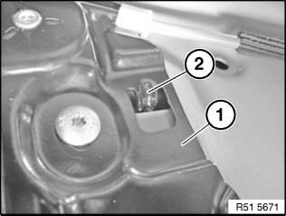 Make sure guide lug (2) of power window unit (1) is correctly seated in recess in door structure.