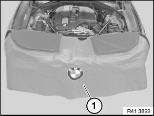 Cover front panel in area of engine compartment lid catches with protective cover (1).