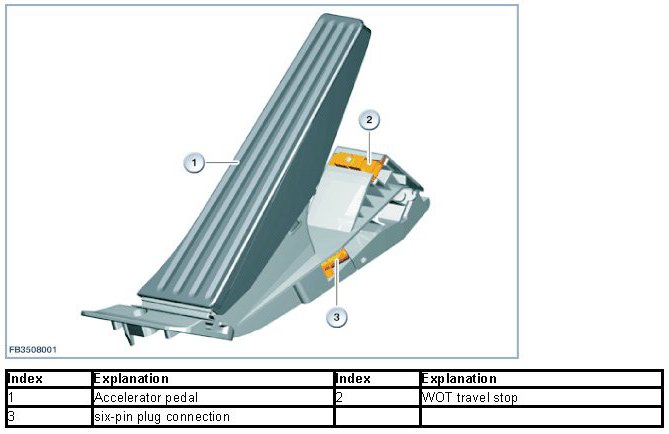 Accelerator pedal position is monitored separately by 2 individual sensors. Two sensors are employed to provide redundancy, implement the monitoring function and facilitate recognition of malfunctions.