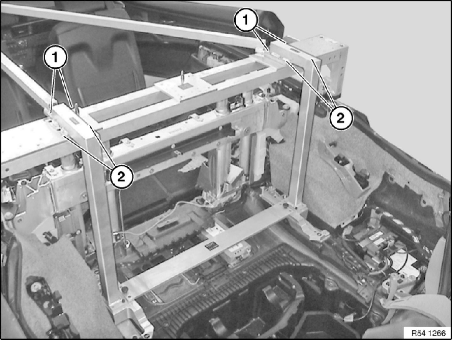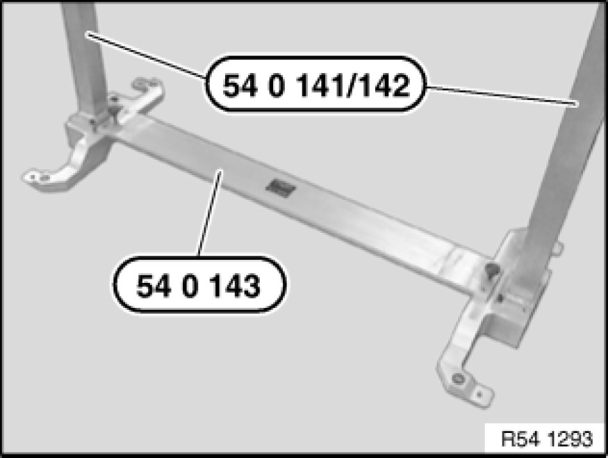 Attach brackets (1) for roof module to special tool 54 0 140.