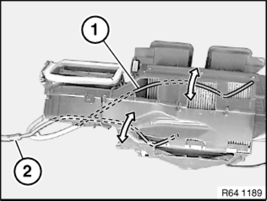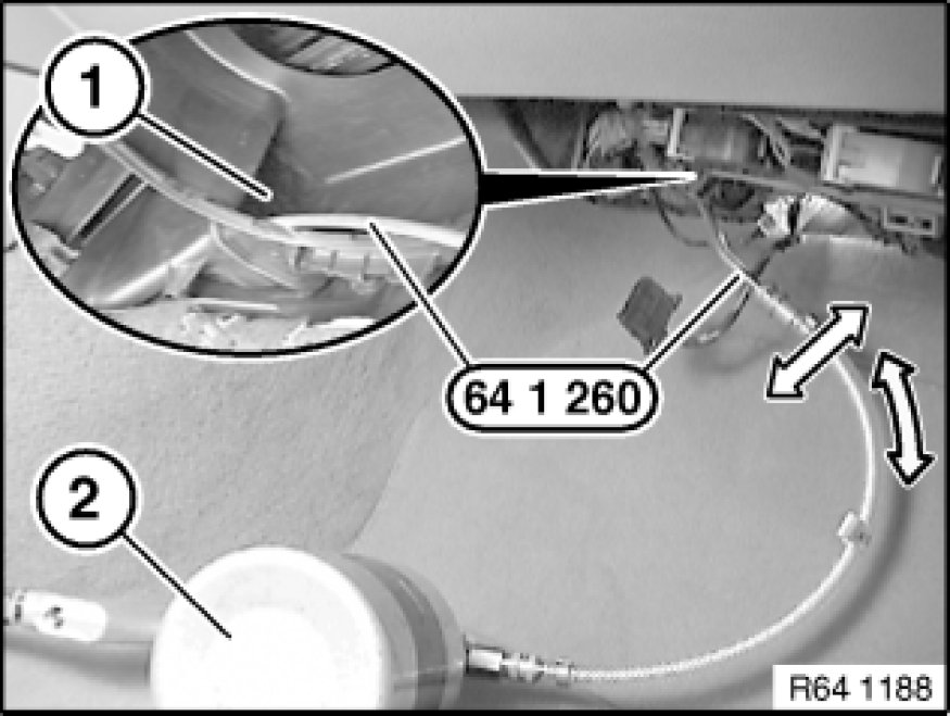 Insert spray lance 64 1 260 64 1 260 Spray Equipment for Air Conditioning (LHD) through opening (1) into fresh air duct.