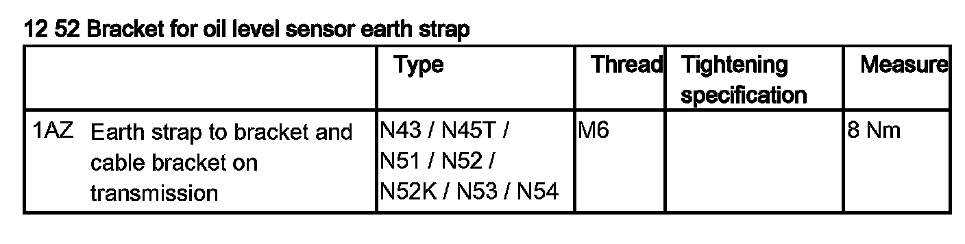 12 52 Bracket For Oil Level Sensor Earth Strap