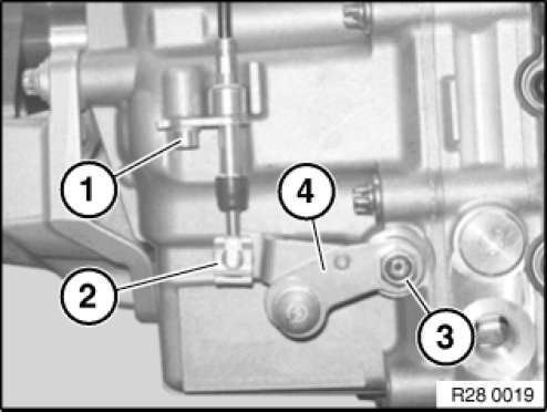 - Release cable from operating lever (4).
