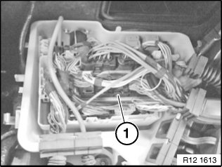 Unlock DDE control unit (1) and remove upwards.