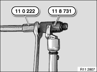 Screw special tool 11 0 222 into special tool 11 8 731 to 10 Nm.